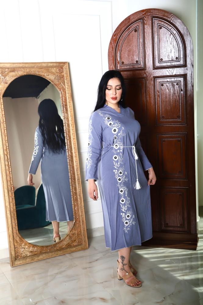 كوني كأنفاس الصباح الهادئة، وأشرقي بإطلالة سماوية تعكس رقة أنوثتك. جلابية نسائية شرقية بلونها السماوي الساحر وتفاصيل تطريزها الفاخر، تمنحكِ مزيجًا من النعومة والرقي، لتكوني في كل لحظة سيدة الذوق الرفيع. إنها ليست مجرد جلابية، بل قطعة تعبّر عن أسلوبكِ الهادئ وأناقتكِ اللامحدودة، المستوحاة من سحر الشرق وفنونه.