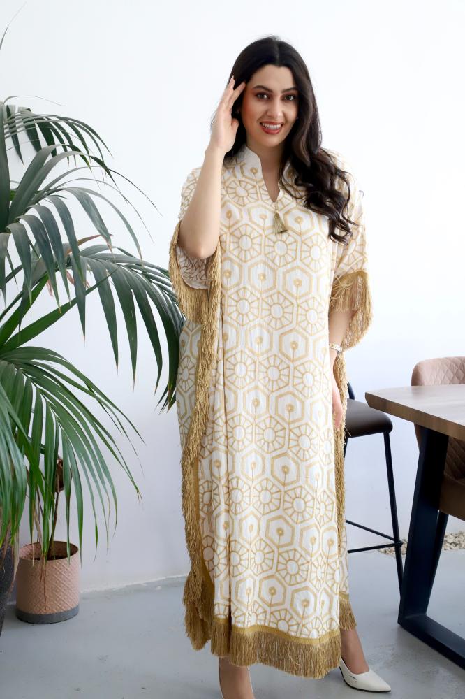 لماذا تختارين جلابية نسائية شرقية مزينة بشراشيب أنيقة ونقوش هندسية؟
