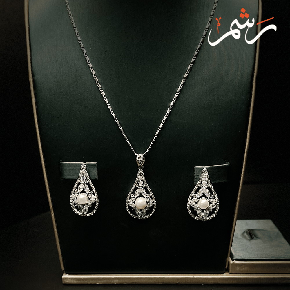 تعليقة فريدة من نوعها بتصميم راقٍ، مصنوعة من أجود أنواع الزركون الذي يلمع ببريق يخطف الأنظار. تتميز بلمسات ناعمة تعكس الأناقة والبساطة في آنٍ واحد. الحلق المصاحب للتعليقة يعزز التناغم في التصميم، ليضيف لمسة من الجاذبية والرقي على إطلالتك، سواء في المناسبات الخاصة أو لإطلالة يومية تفيض بالتميز.