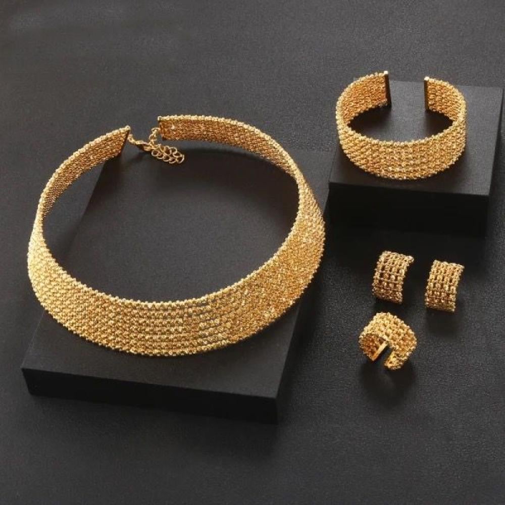 هذا الطقم الذهبي الراقي و الفاخر يعد من ارقى أنوع المطلي في العالم و قد صمم بموديل حديث و عصري ..